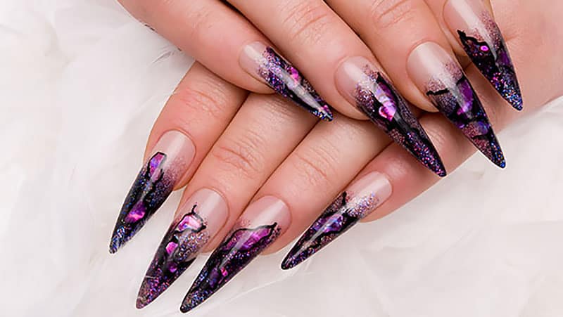 O stiletto é um estilo que surgiu recentemente e conquistou o coração de quem gosta de ousar no visual. Ele consiste em lixar as laterais das unhas para criar o efeito pontiagudo. Para isso, suas unhas precisam ser bastante longas.